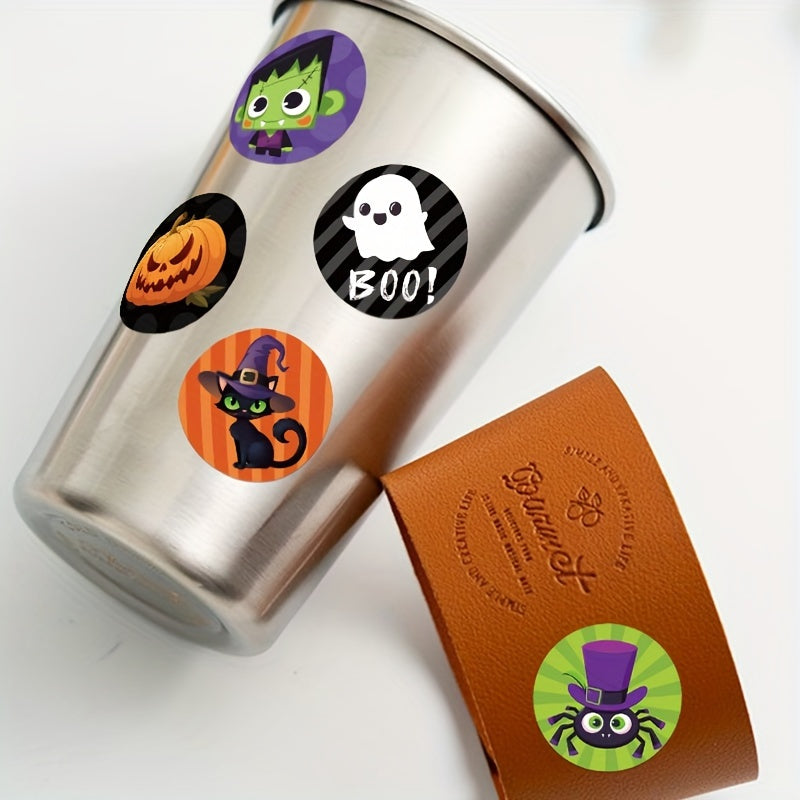 This 1000-pack of Halloween PVC stickers features a vibrant assortment of spooky and fun designs perfect for adding festive charm to any Halloween celebration. Each sticker is printed in bold, colorful graphics with classic Halloween icons such as ghosts, pumpkins, haunted houses, black cats, spiders, and friendly monsters. Phrases like “BOO!”, “Spooky Fun!”, and “Trick or Treat!” are paired with cute characters including witches, Frankenstein, reapers, and smiling jack-o'-lanterns to create an exciting and playful look. Made from durable, waterproof PVC material, these round stickers are easy to peel and stick onto candy bags, invitations, party favors, envelopes, treat boxes, scrapbooks, and more. With 1000 pieces included on neatly rolled sticker tapes, this set offers ample quantity and variety to decorate classrooms, parties, trick-or-treat giveaways, and crafts for kids and adults alike. Each sticker measures approximately 1 inch in diameter, making them ideal for both small and large-scale decorating needs.