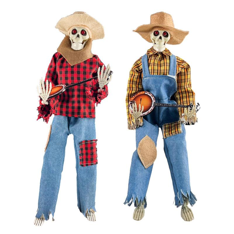 Animated Halloween Skeleton Decor Playing Banjo with Glowing Light