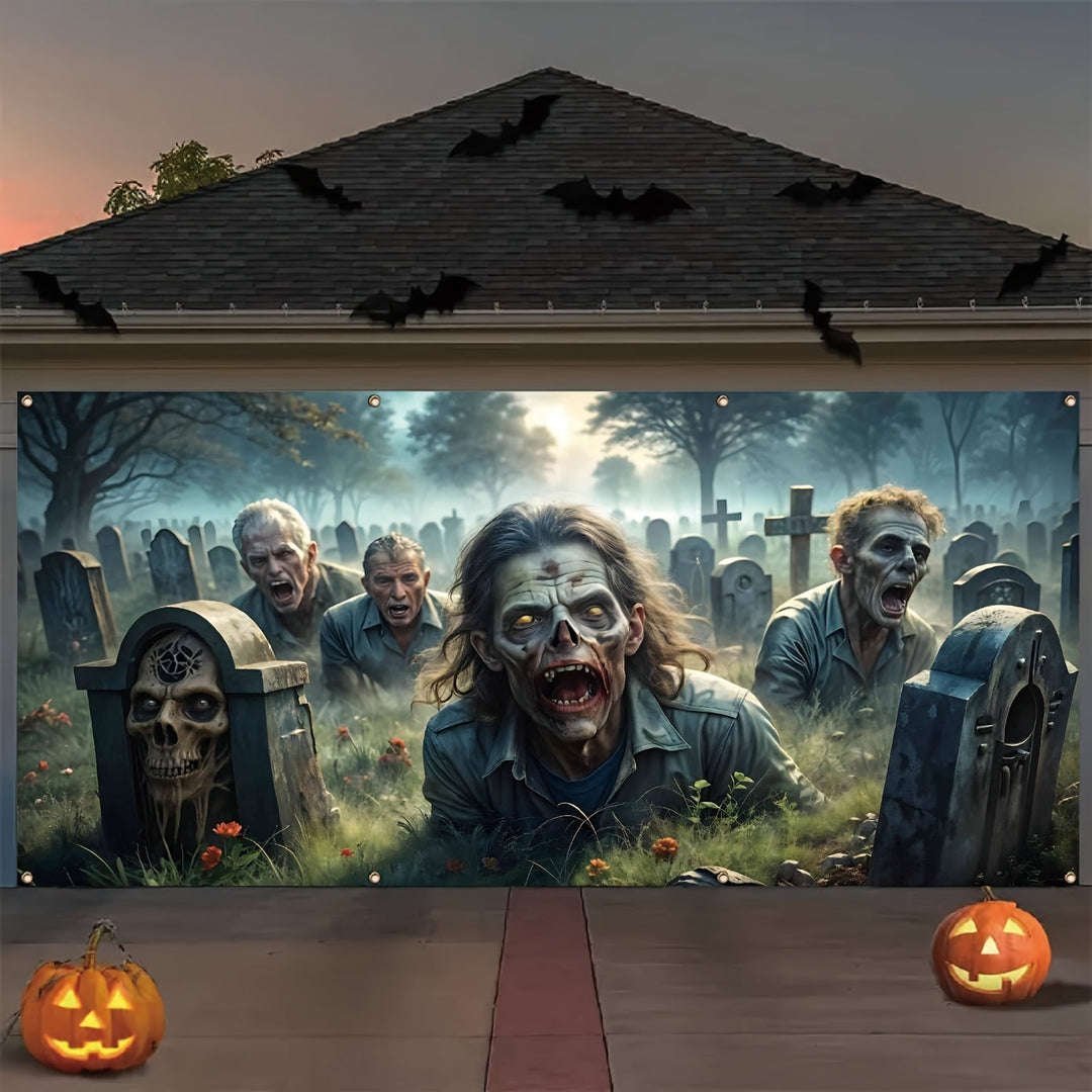 Large Halloween Zombie Graveyard Garage Door Banner Fade-Resistant Polyester