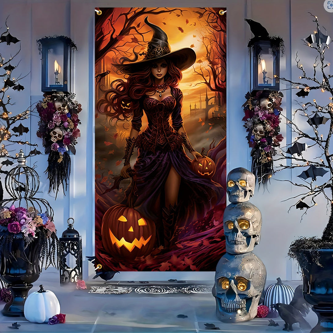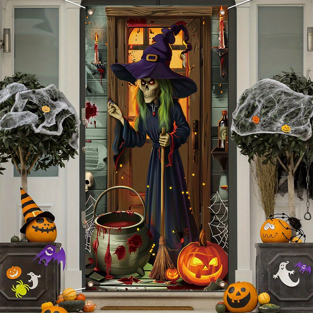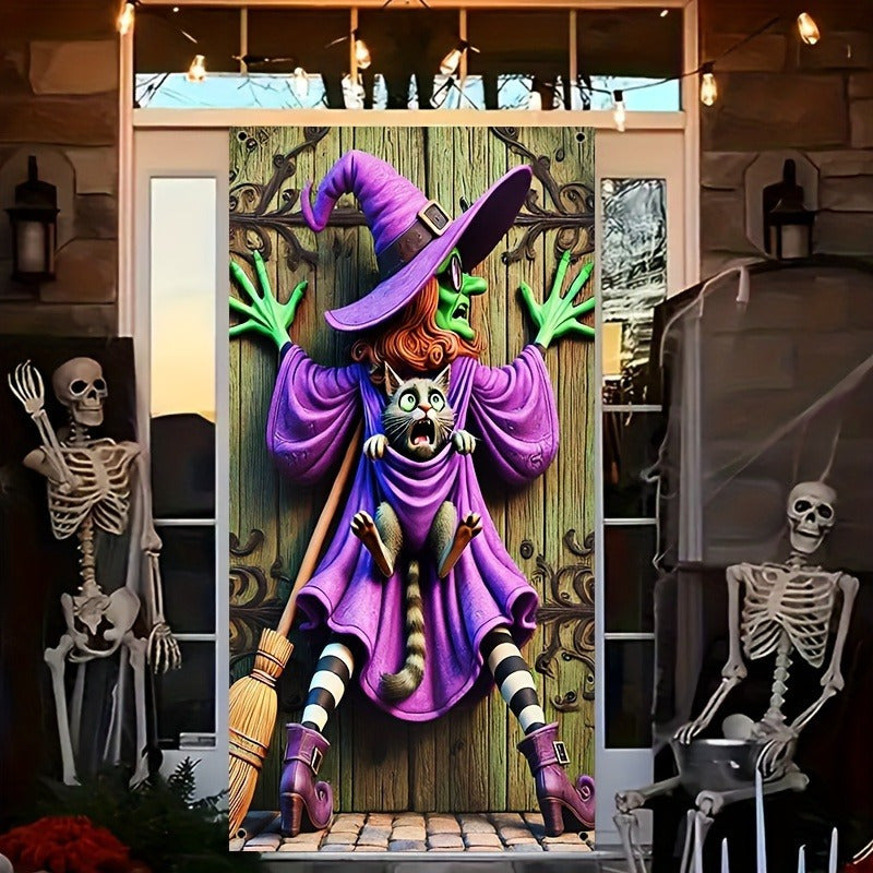 Halloween Indoor Polyester Witch Door Banner – No-Electricity Party Decor