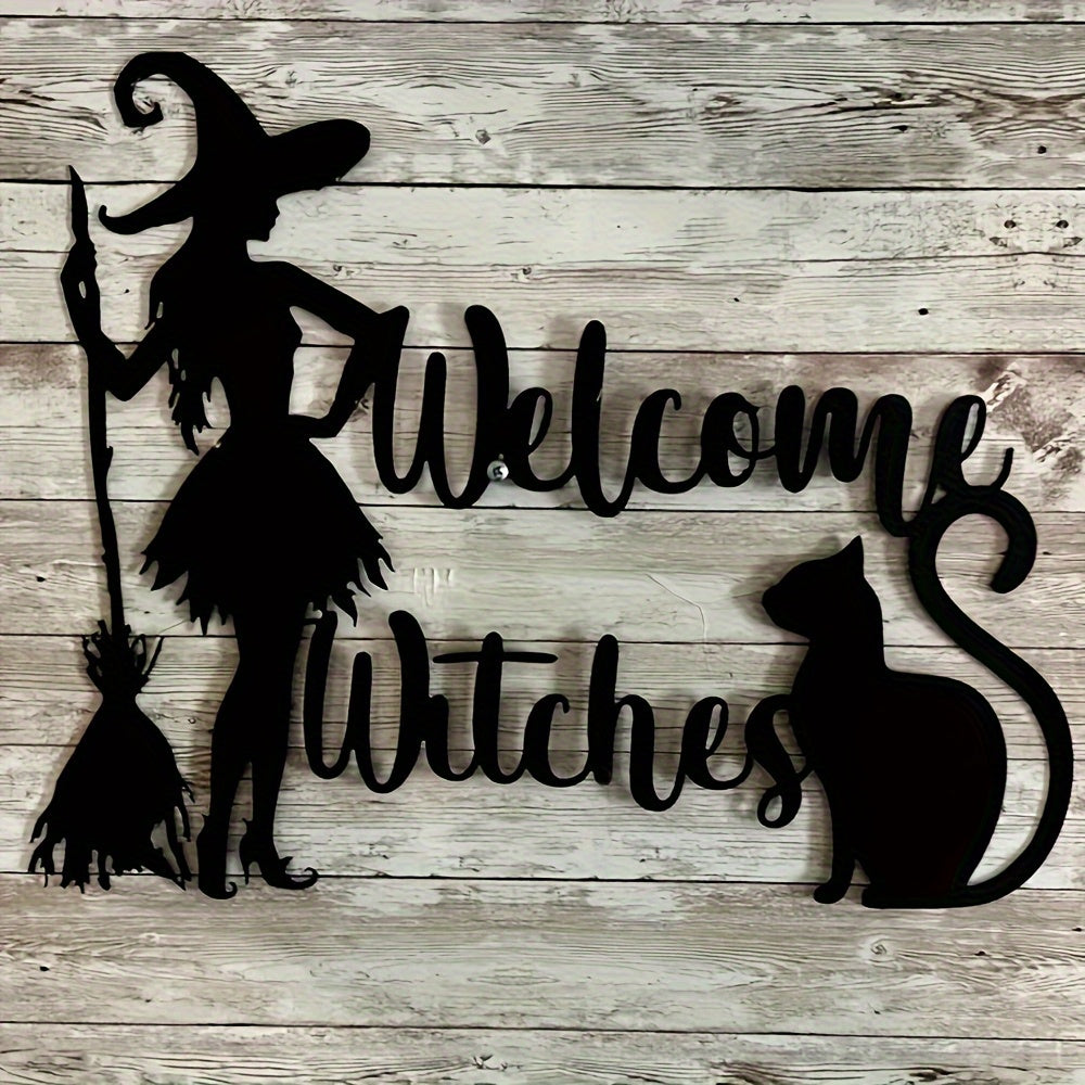 Acrylic Witch and Cat Halloween Welcome Sign – Classic No-Power Door Decor