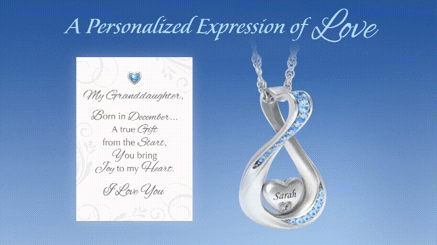 Solid sterling silver infinity pendant with Swarovski crystal birthstones, engraved name, genuine diamond. Engraved reverse. Gift box and poem card.